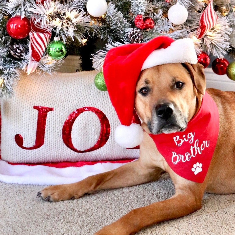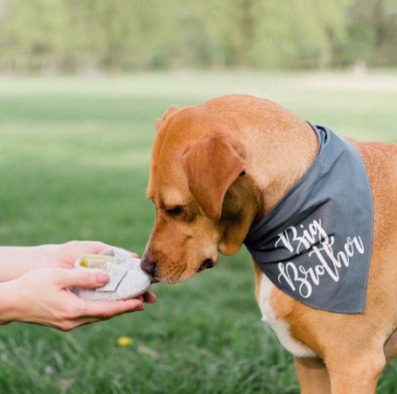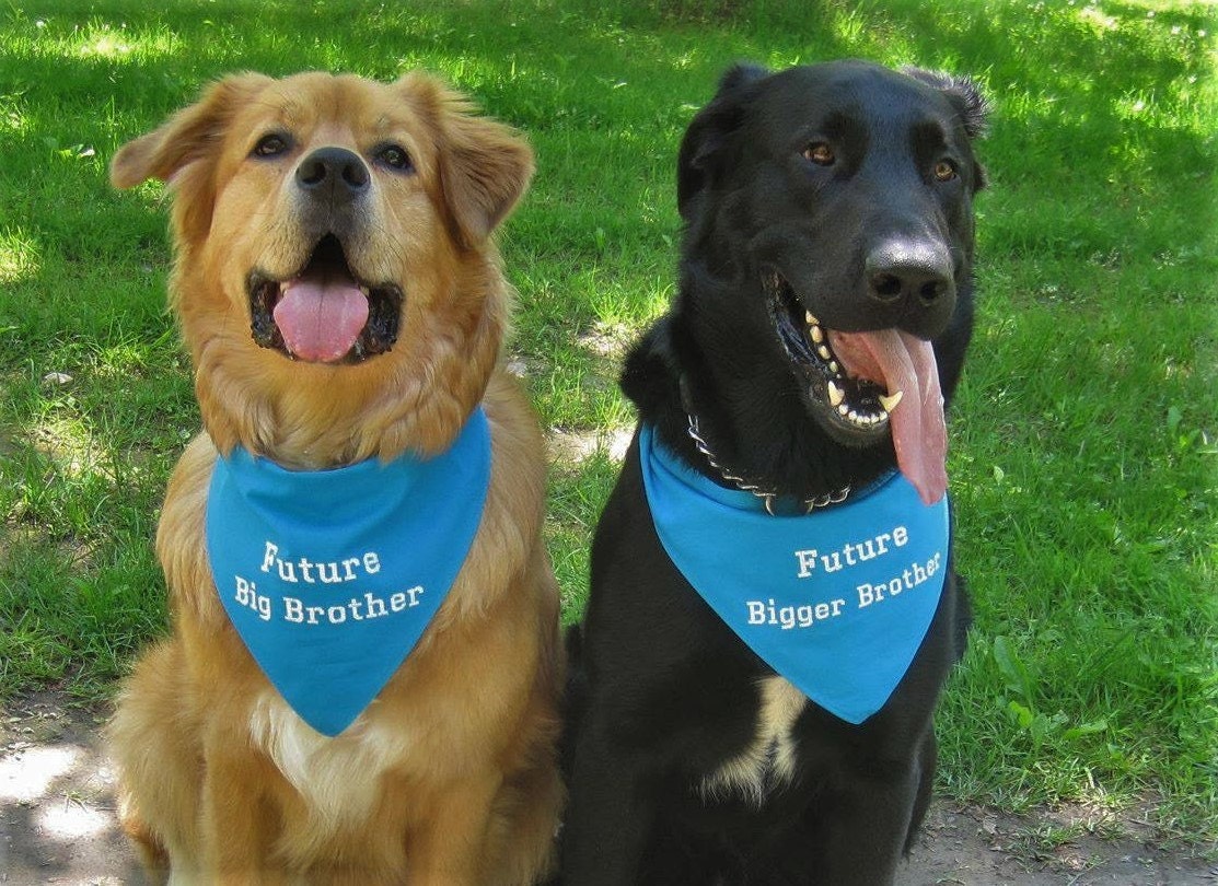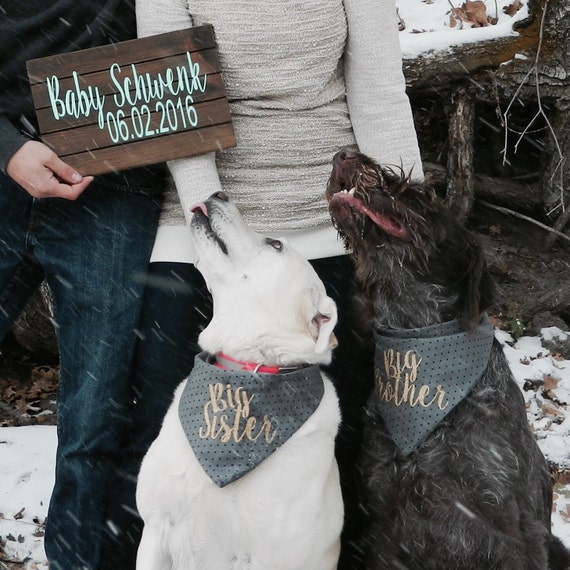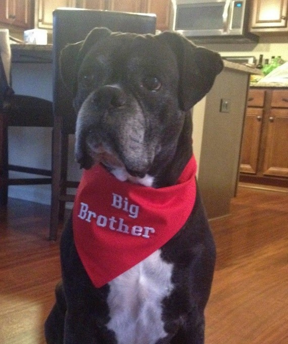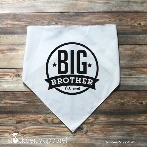 Free personalization & fast shipping. Or maybe the big brother to your new addition. T these 100% certified organic cotton dog bandanas with fashionable coverstitch edge and quality silk screened lettering are completely machine washable. Dress up your dog for any special occasion or everyday mood in our comfortable, adjustable and lightweight dog bandana scarf available in a variety of colours and unique designs. Do you like this video?
